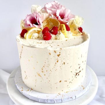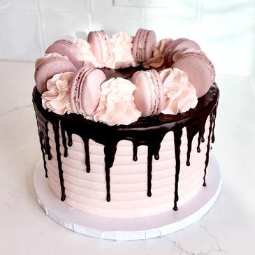 Your choice of cake flavor. Option to add Chocolate Drip, macarons and other items to elevate your cake design.