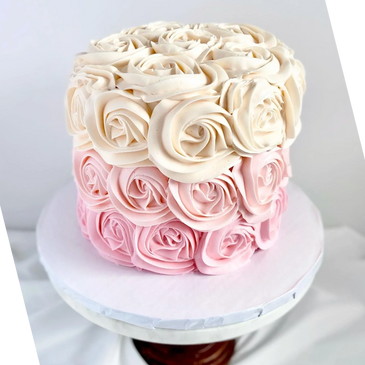 This beautiful Rosette Cake is available in a few classic flavors; Vanilla, Chocolate, & Funfetti. Also available in a few colors.