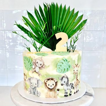 This cute jungle themed cake is perfect for either a fun birthday or baby shower.
