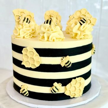 Our bumblebee cake is avaible in many cake flavors. Options to add sprinkles, edible gold, and/or other fun items to make it extra special.