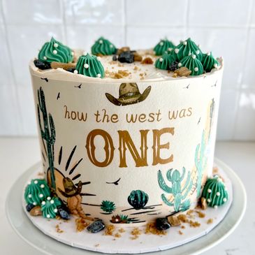 This cute western theme is perfect for the one year old. Available in few flavors.