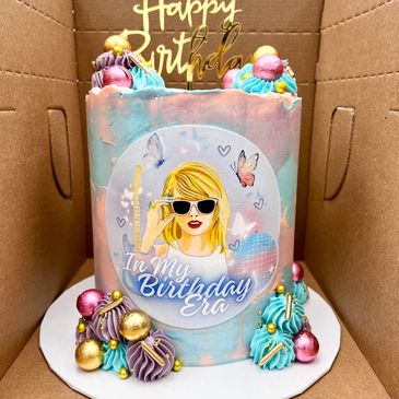 Your choice of cake flavor. Option to add Chocolate Drip, macarons and other items to elevate your cake design.